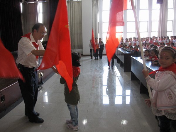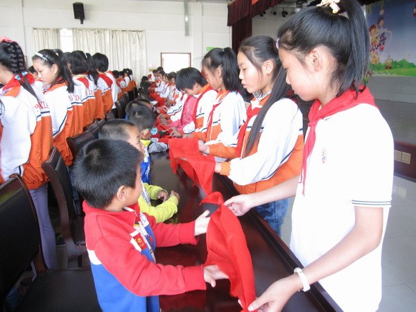 2012年10月12日,少先队大队部在学校聚雅楼报告厅隆重举行“红领巾心向党,感受你的爱”庆祝建队63周年大会暨一年级新队员入队仪式。鲜红的队旗、铿锵的队鼓、嘹亮的队歌,格外鼓舞人心。大队长李洪兴首先以《童心喜迎十八大,争当花博好少年》为题讲话,代表全体少先队员向所有新入队的小伙伴表示热烈的祝贺。并向他们提出几条建议:1、每天佩戴红领巾。2、精心爱护红领巾。3、维护好队员尊严。4、为领巾增光添彩。教育处周黎洪主任郑重地宣布了新队员名单。接着,老队员庄重地为新队员佩戴上鲜艳的红领巾。总辅导员李永清向新建的四个中队授予队旗,会场上响起热烈的掌声。随后,总辅导员带领大家庄严宣誓,新老队员用高昂的声音表达自己对少先队的热爱、对党的热爱、对祖国的热爱。总辅导员还勉励少先队员心儿向党,努力学习,开拓进取,锤炼意志,积极争当“四好少年”,长大了为中华民族的繁荣富强贡献智慧和力量。