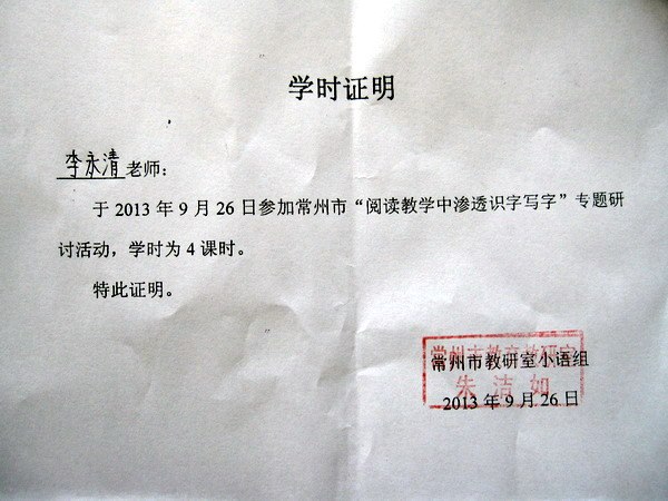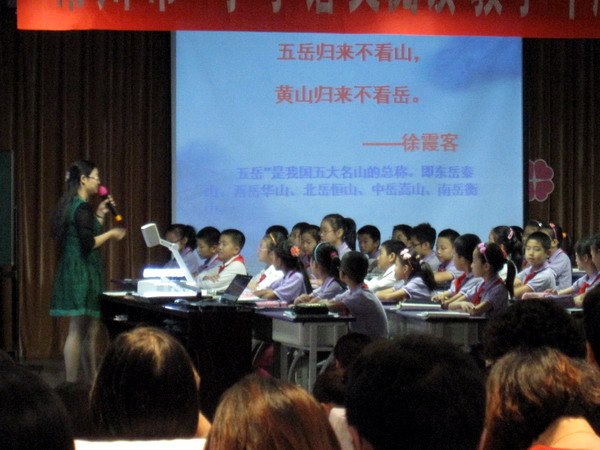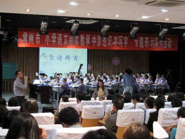 2013年9月26日,我们有幸参加了在湖塘桥中心小学举行的“常州市‘小学语文阅读教学中渗透识字写字’专题研讨系列活动”,重点对新课标落实识字写字教学进行积极研讨。新课标要求“要在每天的语文课中安排10分钟,在教师指导下随堂练习,做到天天练。”这种要求是针对目前写字教学被忽视,学生写字质量急速下降的现实问题而提出。今天,武进区湖塘桥中心小学的钱琳老师执教六年级《古诗二首》、金坛市华城实验小学的朱小薇老师执教五年级《黄山奇松》,展示了如何在语文教学课堂落实10分钟写字的场面,让大家深受启发。
