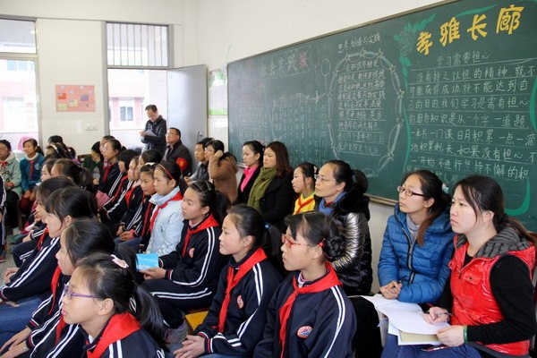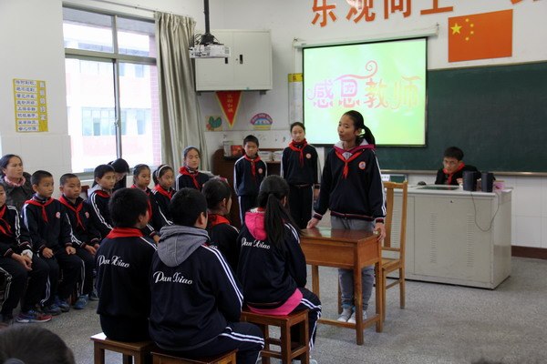 孝塑本心,雅行天下。为积极推行新时代“孝雅教育”课题研究,促进少先队员健康成长,2014年11月19日,潘家小学六(4)中队举行“常怀感恩心”主题活动,全体辅导员及少先队大队委员参加观摩活动,进行活动课题研讨。