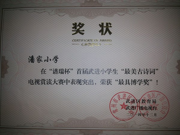 我校四位学生在“谱瑞”杯首届武进小学生“最美古诗词”电视大赛中获“最具博学奖”