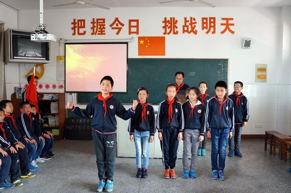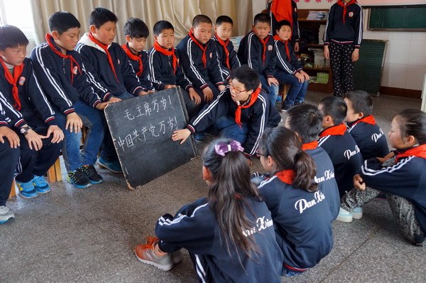 2015年是中国人民抗日战争暨世界反法西斯战争胜利70周年,潘家小学积极响应江苏省文明办、共青团江苏省委、江苏省教育厅、省少工委的号召,围绕“缅怀先烈,梦圆中华”这个主题,教育引导广大少先队员牢记中华民族抵御侵略、奋勇抗争的历史,学习宣传抗日先烈的英雄事迹,大力弘扬爱国主义精神,培育和践行社会主义核心价值观。3月31日下午,潘家小学五(4)中队在辅导员陆斌的指导下,以“英雄伴我成长”为主题举行活动,探讨今后活动的开展。学校领导杨建东、周黎洪等和全体辅导员参加活动。