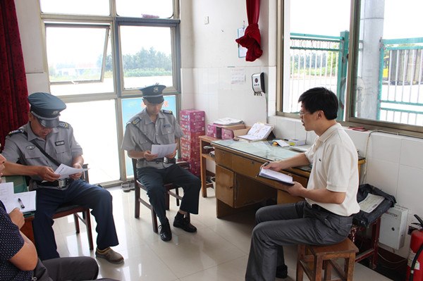 为了便于保安同志的工作,会议在门卫室进行,会上,徐向东总务首先组织两位保安学习了《学校保安人员工作职责》,指出近期工作中存在不足之处,强调了下阶段工作注意事项。