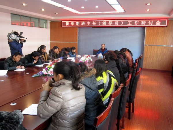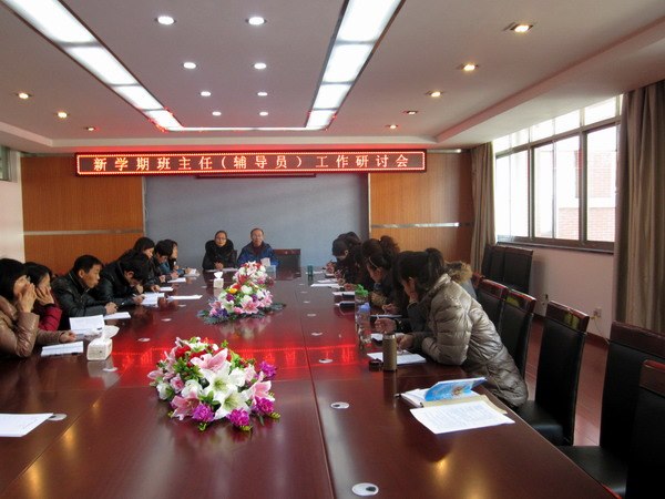 春返神州舒画卷,马腾盛世入诗篇。新春的欢歌还在继续,新学期的号角却已经吹响。为了加强学校新学期德育工作的针对性和有效性,潘家小学于2014年2月15日下午召开了班主任(辅导员)工作研讨会。会议由教育处主任周黎洪主持。