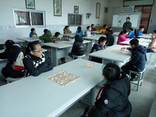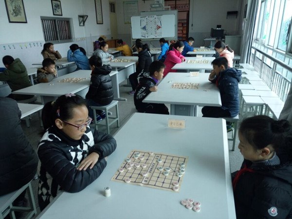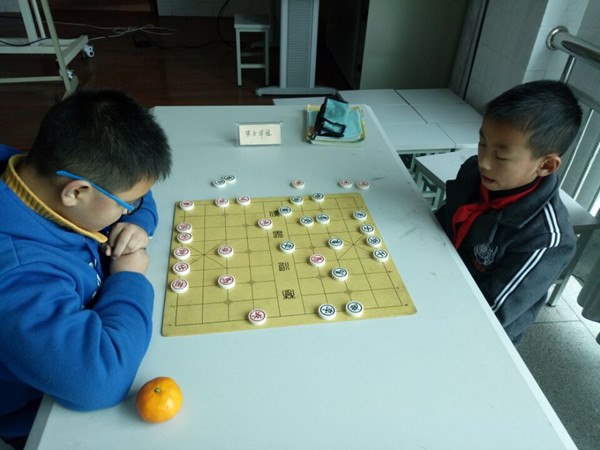11月25日下午,潘小、寨小象棋传统校际交流对抗赛在寨桥小学图书馆举行。我校其乐少年宫象棋小组12名学员在秦旭峰、王东明老师的带领下参加了此次活动。寨小黄勇校长,李建新、王兰副校长以及教导处钱斌主任,体育教研组长许文刚都亲临赛场观摩,体现了两校的深厚友谊及对活动的重视。余国儒担任现场裁判员。
