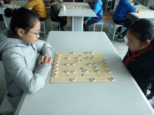下午1时,队员按抽签对手就座,首先余教练宣读了比赛规则及注意事项,然后宣布第一轮比赛开始。棋类运动是体现智力的项目,队员们在图书馆进行对弈,符合“身静而神动”的特点。本次比赛沿用了区比赛的规程,每队分甲乙两组,每组各3男3女。双方共用时间40分钟,之后用钟每人10分钟包干,超时判负。比赛中,12对选手都非常投入,或落子如飞,或静思长考。经过三轮比拼,我校选手以总比分42:30获得优胜。