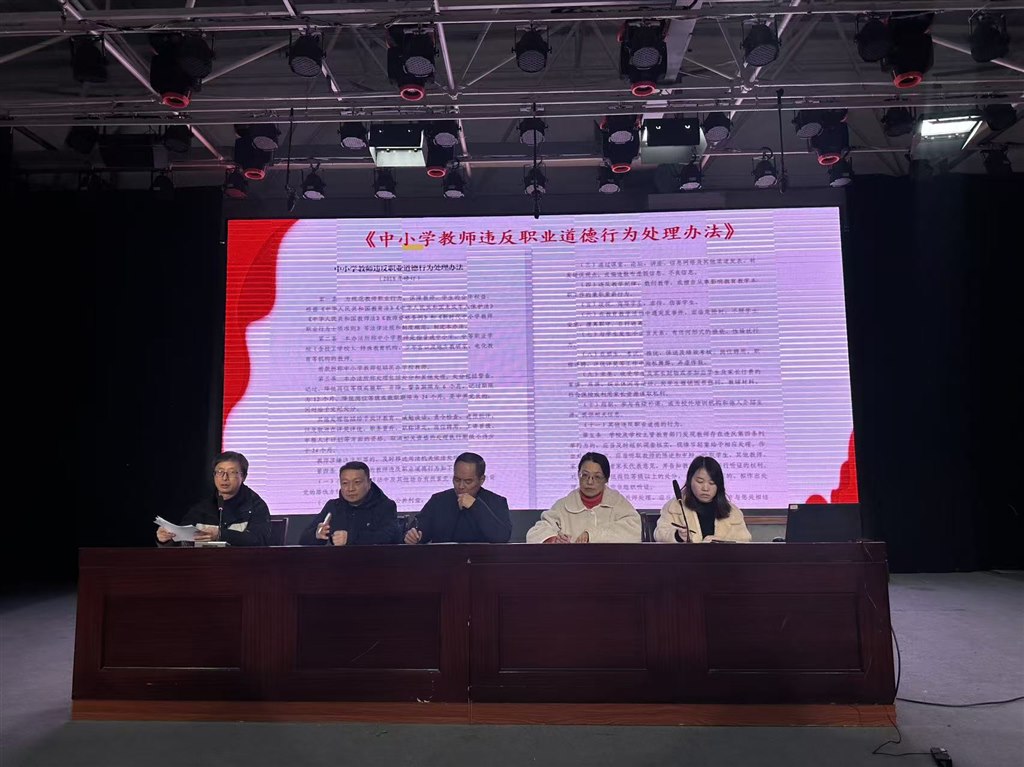 | 2025年12月29日中午12:05,武进区潘家小学全体教师齐聚报告厅,共同参加师德讲堂第六讲。本次讲堂旨在进一步强化教师职业道德意识,规范职业行为,营造风清气正的教育环境。 活动伊始,胥校长宣读了关于加强师德师风建设工作的通知,并结合近期教育系统发生的典型案例,通报了师德失范行为的严重后果。胥校长强调,每一位教师都应当以案为鉴、警钟长鸣,坚决杜绝类似情况的发生,真正肩负起立德树人的神圣使命。 随后,四位副校长分别带领全体教师深入学习四项重要文件与规定。鲁校长详细解读了《新时代中小学教师职业行为十项准则》,强调准则是指引教师行为的基本规范,全体教师必须内化于心、外化于行。汤校长围绕《中小学教师违反职业道德行为处理办法》,系统说明了违反师德行为的认定标准与处理程序,提醒教师们严守职业底线。钮校长结合《未成年人学校保护规定》,重点阐述了学校在保护学生身心健康、预防欺凌侵害等方面的责任与措施,呼吁全体教师共同守护学生的成长环境。何校长则带领大家学习了《常州市中小学幼儿园教师职业行为负面清单》,逐条剖析禁止性行为,引导教师自觉抵制不良风气,树立良好形象。 学习中,与会教师认真聆听、详细记录,纷纷表示要将各项规范要求融入日常教育教学全过程,做到“人人知晓、人人践行”。大家一致认为,教师不仅是知识的传授者,更是学生品格塑造的引路人,必须时刻以高尚的师德师风要求自己,以实际行动维护教师职业的崇高与纯洁。 胥校长在总结中指出,师德建设是一项长期而艰巨的任务,必须常抓不懈、久久为功。他希望全体教师以此次学习为契机,进一步提高政治站位,增强责任意识,恪守职业道德与社会公德,全心全意呵护每一位学生的健康成长,共同维护潘家小学乃至全区教育的良好生态。 本次师德讲堂内容充实、意义深远,不仅强化了教师的纪律意识和规范意识,也为学校持续推进师德师风建设奠定了坚实基础。潘家小学将继续通过常态化、制度化的师德教育活动,引导广大教师争做有理想信念、有道德情操、有扎实学识、有仁爱之心的新时代好老师,为培养德智体美劳全面发展的社会主义建设者和接班人贡献力量。