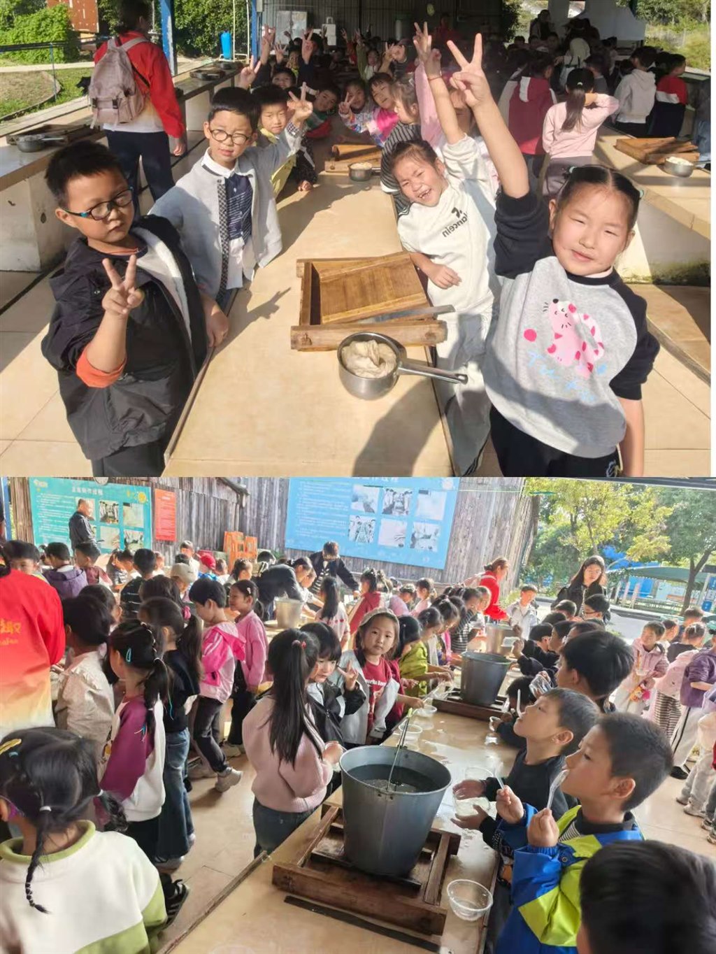 孩子们化身小小美食家,亲手体验磨豆浆、做豆腐的乐趣;在树叶拓印区,他们捡拾缤纷落叶,创作独一无二的拓印画。百鸟园里,大家与灵动小鸟近距离互动;爬行馆中,新奇的小动物引得阵阵惊叹。最后,游乐场的滑梯、秋千更让孩子们笑声不断。